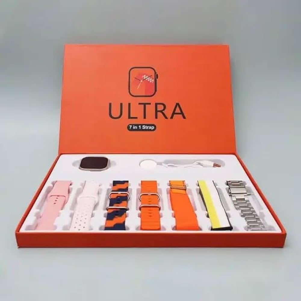 2.01″ 7in1 Ultra Smartwatch Bluetooth Calling Smartwatch, AI Voice Assistant, Metal Body with SpO2, Heart Rate Monitoring (7 Multicolor Straps)
